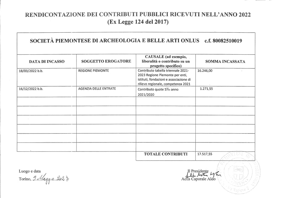 SOCIETA' PIEMONTESE DI ARCHEOLOGIA E BELLE ARTI ONLUS